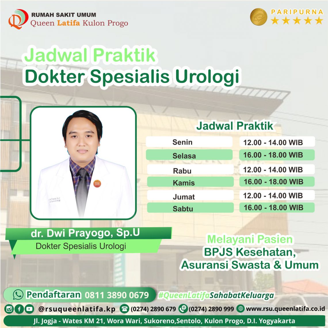Informasi lebih lanjut tentang layanan RSU Queen Latifa Kulon Progo lainnya dapat menghubungi :