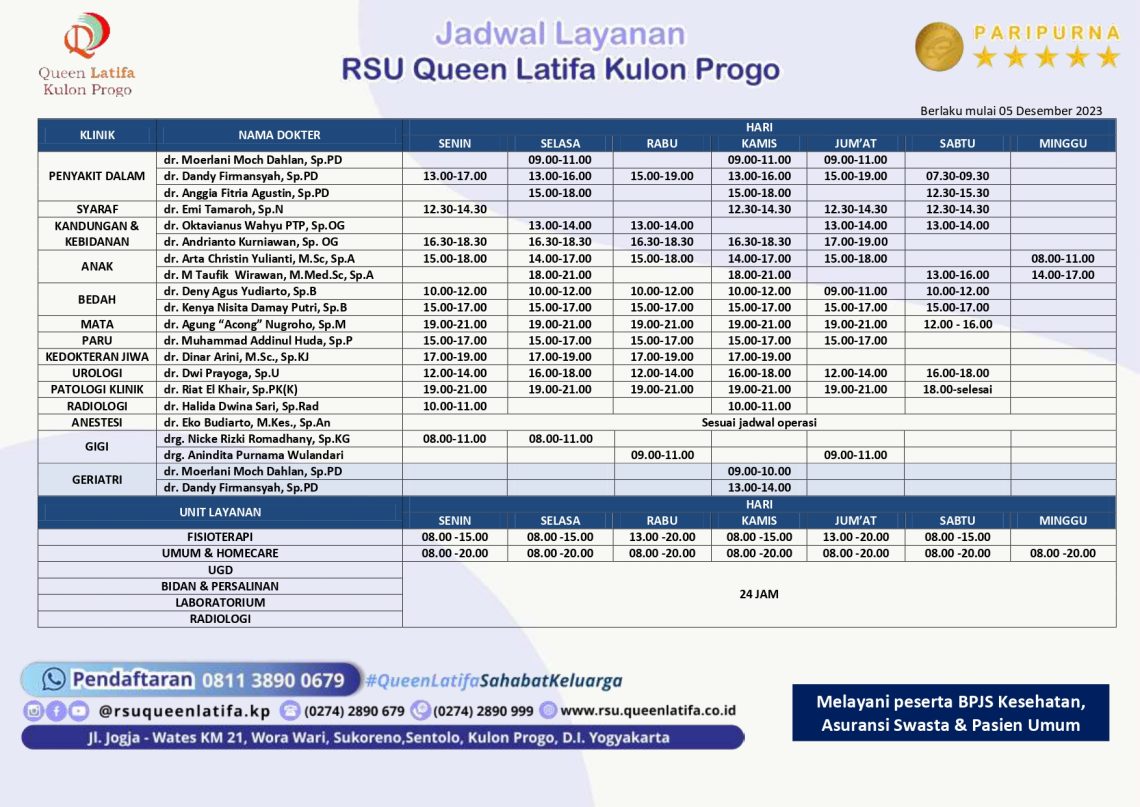 Jadwal Layanan RSU Queen Latifa Kulon Progo ya sahabat.