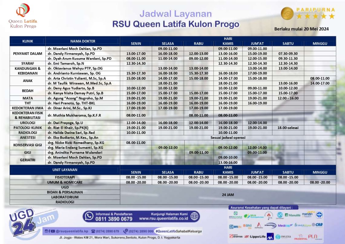 Jadwal Layanan RSU Queen Latifa Kulon Progo ya sahabat.