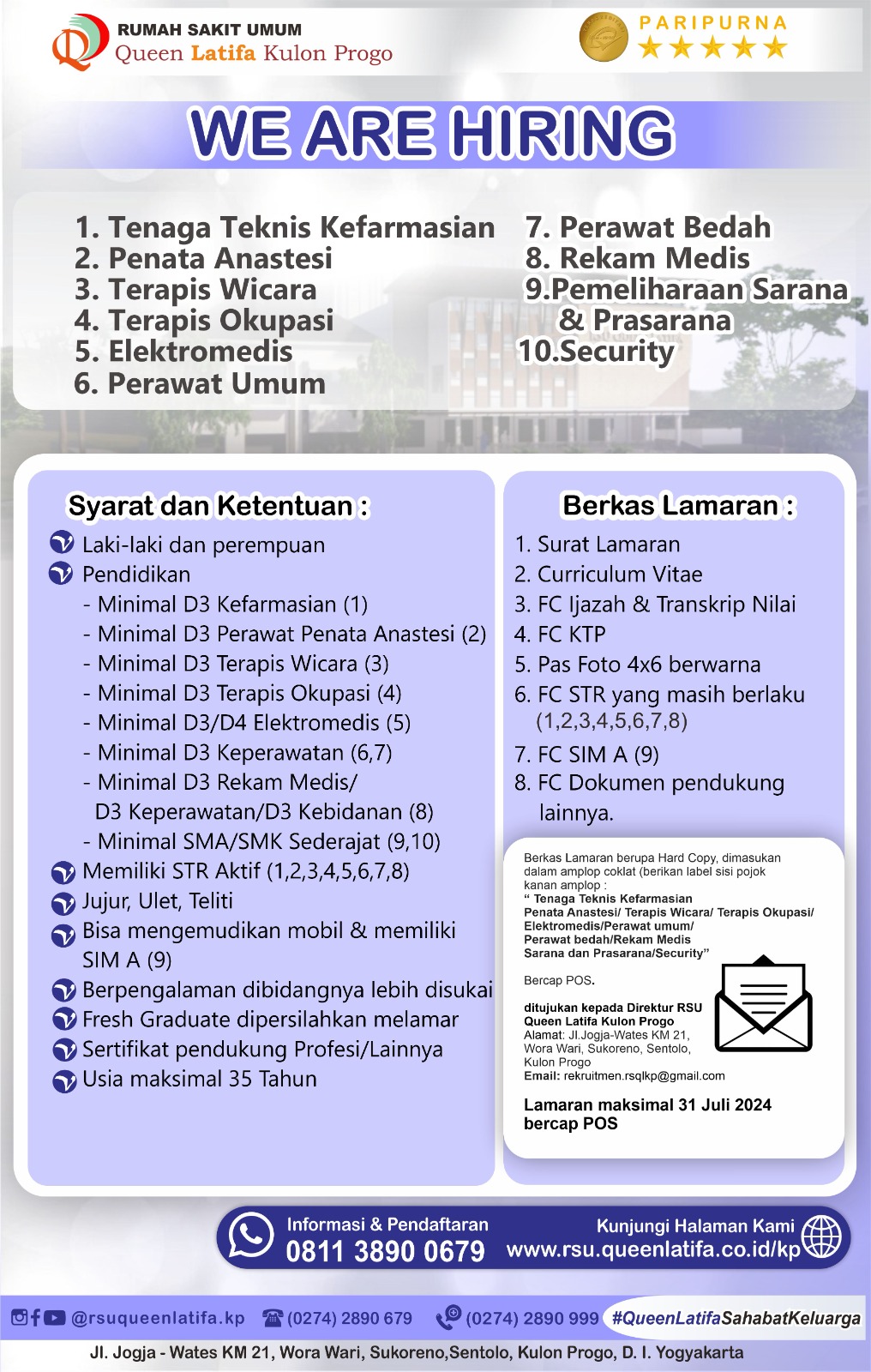 Jangan ragu untuk selalu mempercayakan layanan kesehatan di RSU Queen Latifa Kulon Progo ——————————————————– Informasi lebih lanjut tentang layanan RSU Queen Latifa Kulon Progo lainnya dapat menghubungi :