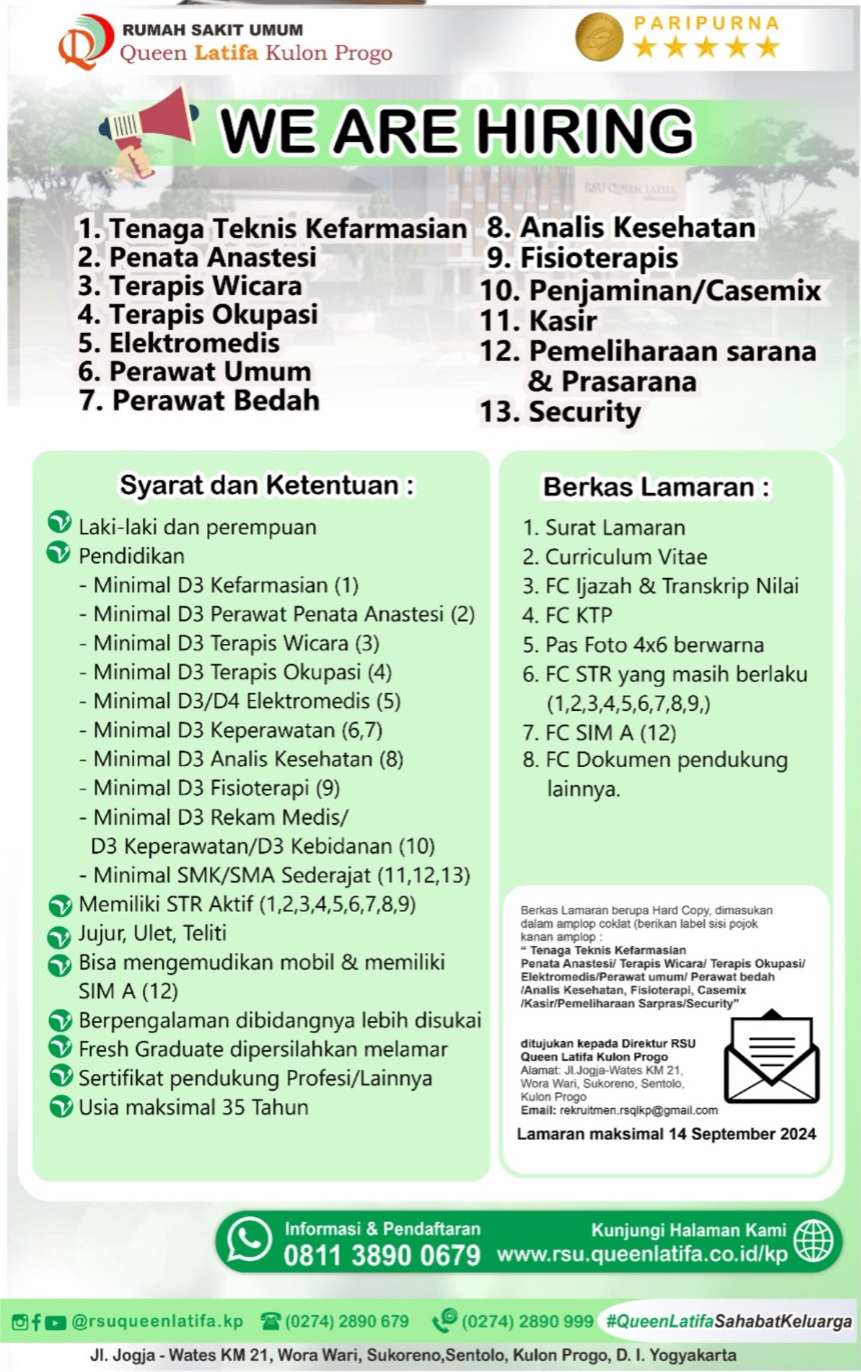 Lowongan Pekerjaan humasrsuqlkp 6 September 2024 0 Comments Hallo SahabatAyo bergabung bersama kami di RSU Queen Latifa Kulon ProgoRSU Queen Latifa Kulon Progo membuka peluang untuk dapat bergabung dan berkarya bersama kamiYuk cek postingan diatas untuk mengetahui detailnya#lowongankerja#lowkerjogja#lokerjogjakarta#lowongankerjajogja#lowongankerjakulonprogo#lowkerkesehatan Visit: 287 CategoryUncategorized Like Write a comment: Cancel replyCommentName * Email * Website Your email address will not be published. Save my name, email, and website in this browser for the next time I comment.