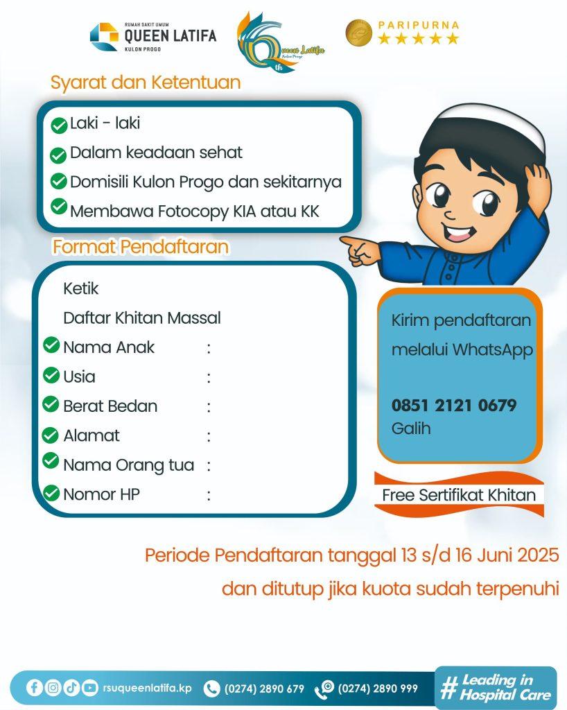 Dalam rangka memperingati hari jadi yang ke-6, RSU Queen Latifa Kulon Progo mengadakan Bakti Sosial Khitan Massal