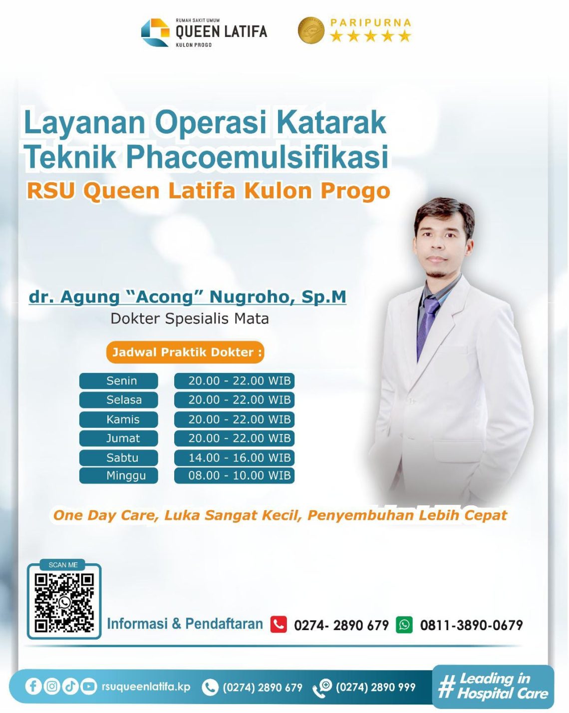Informasi Layanan Operasi Katarak dan Jadwal Praktik Dokter Spesialis Mata di RSU Queen Larifa Kulon Progo ya Sahabat☺️