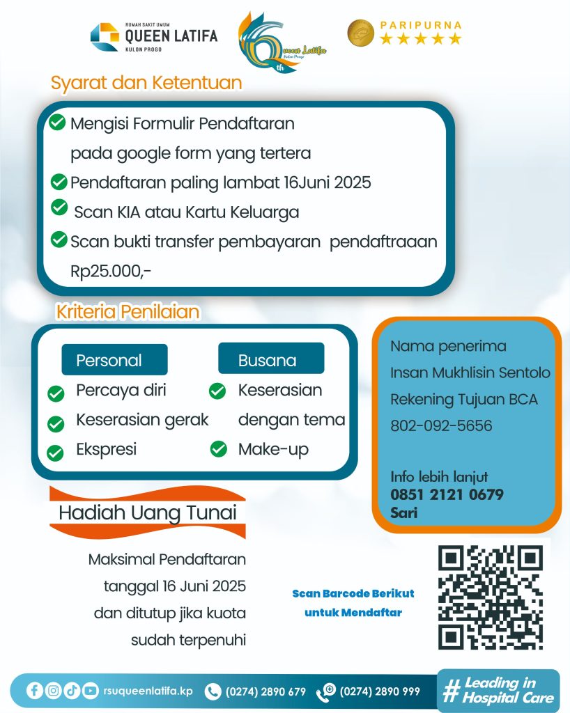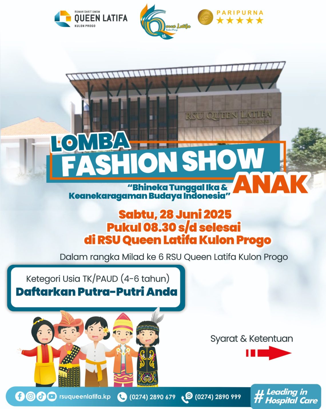 Dalam rangka memperingati hari jadi yang ke-6, RSU Queen Latifa Kulon Progo mengadakan berbagai rangkaian lomba salah satunya lomba Fashion Show Anak, tema yg diusung adalah