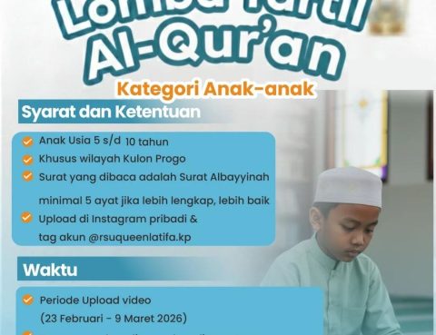Dalam rangka memeriahkan bulan Ramadhan 1447 H panitia Ramadhan RSU Queen Latifa Kulon Progo mengadakan lomba untuk eksternal Lomba Tartil anak.Sayarat dan ketentuannya : Anak usia 5-10 tahun Khusus wilayah Kulon Progo Surat Albayyinah-tag akun RSU Queen Latifa Kulon Progo @rsuqueenlatifa.kp silahkan memperkenalkan diri di dalam videonya Periode video tgl 23 Februari -9 Maret 2026Pemenang…