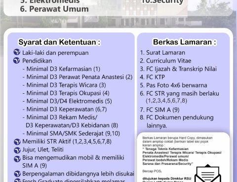 Liked by Informasi Lowongan Pekerjaan Hallo Sahabat…Ada informasi tentang Lowongan Kerja ya Sahabat☺️Bisa melayani Pasien BPJS Kesehatan, Asuransi Swasta dan Umum ya SahabatYuk cek lengkapnya melalui postingan diatasJangan ragu untuk selalu mempercayakan layanan kesehatan di RSU Queen Latifa Kulon Progo——————————————————–Informasi lebih lanjut tentang layanan RSU Queen Latifa Kulon Progo lainnya dapat menghubungi :☎️ ( 0274…