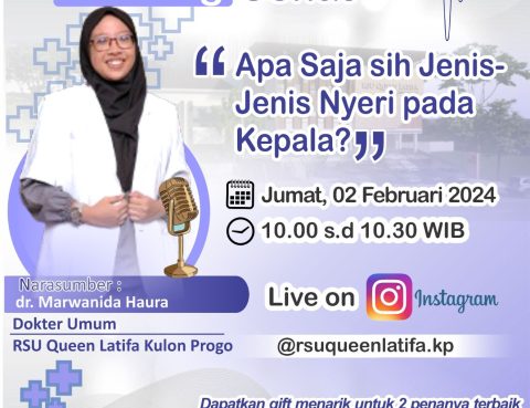Bincang Sehat “Apa Saja Sih Jenis – Jenis Nyeri Pada Kepala” dengan narasumber dr. Marwanida Haura Dokter Umum Queen Latifa Kulon Progo.Yuk simak live nya melalui link berikut https://www.instagram.com/reel/C21JgwyvRfT/?utm_source=ig_web_copy_link&igsh=MzRlODBiNWFlZA== Semoga bermanfaat ????Salam sehat ☺
