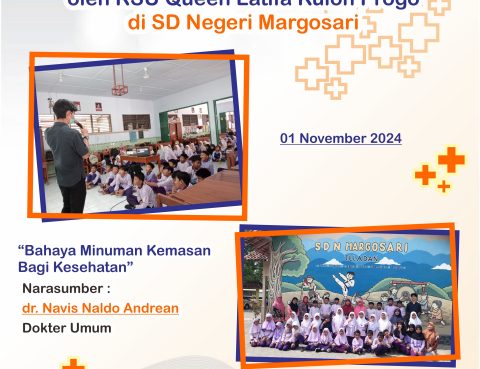 Kegiatan Penyuluhan Kesehatan oleh RSU Queen Latifa Kulon Progo di SD N Negeri Margosari tentang bahaya minuman kemasan bagi kesehatan oleh dr. Navis Naldo Andrean.