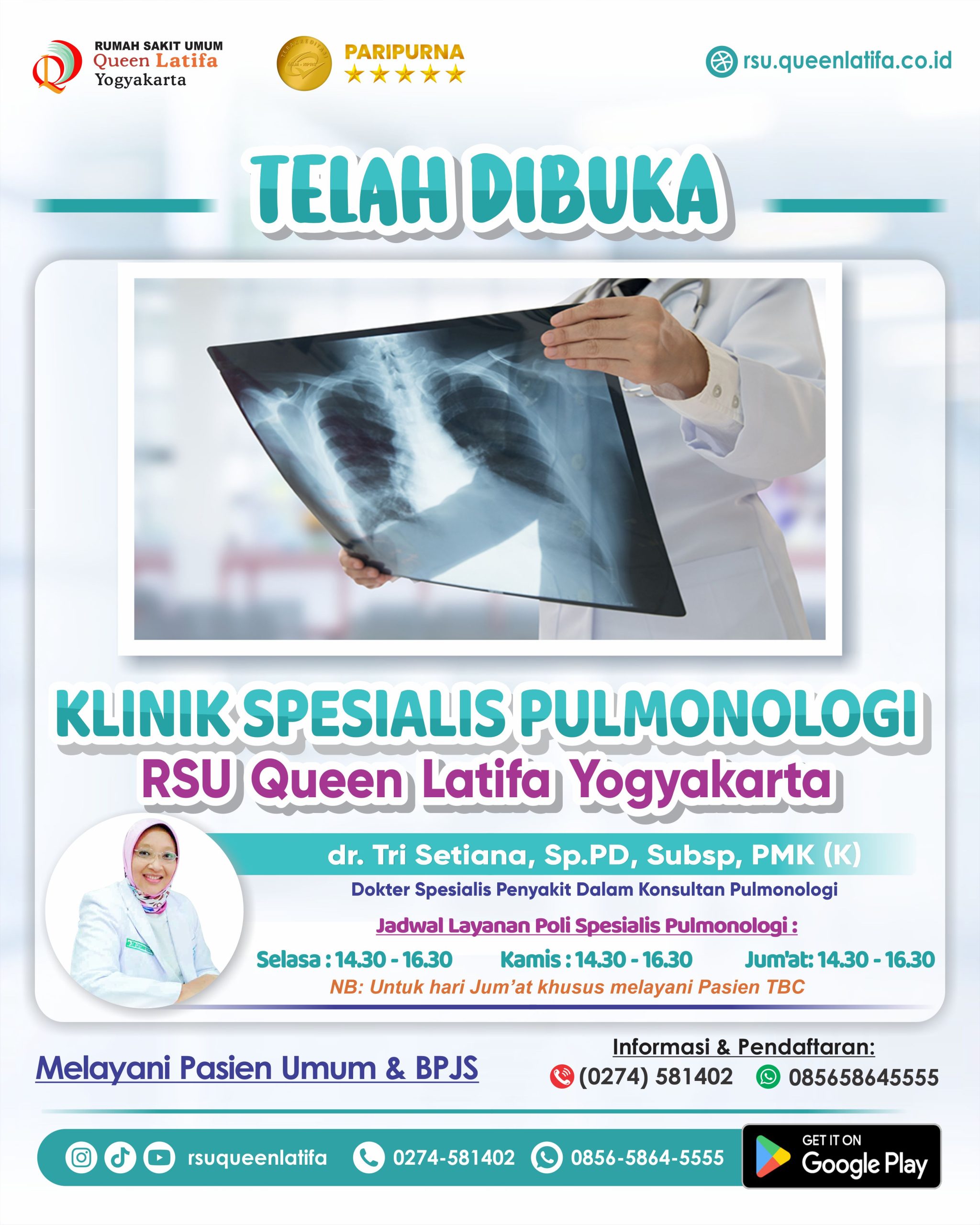 Telah dibuka Layanan Klinik Spesialis Pulmonologi RSU Queen Latifa Yogyakarta.