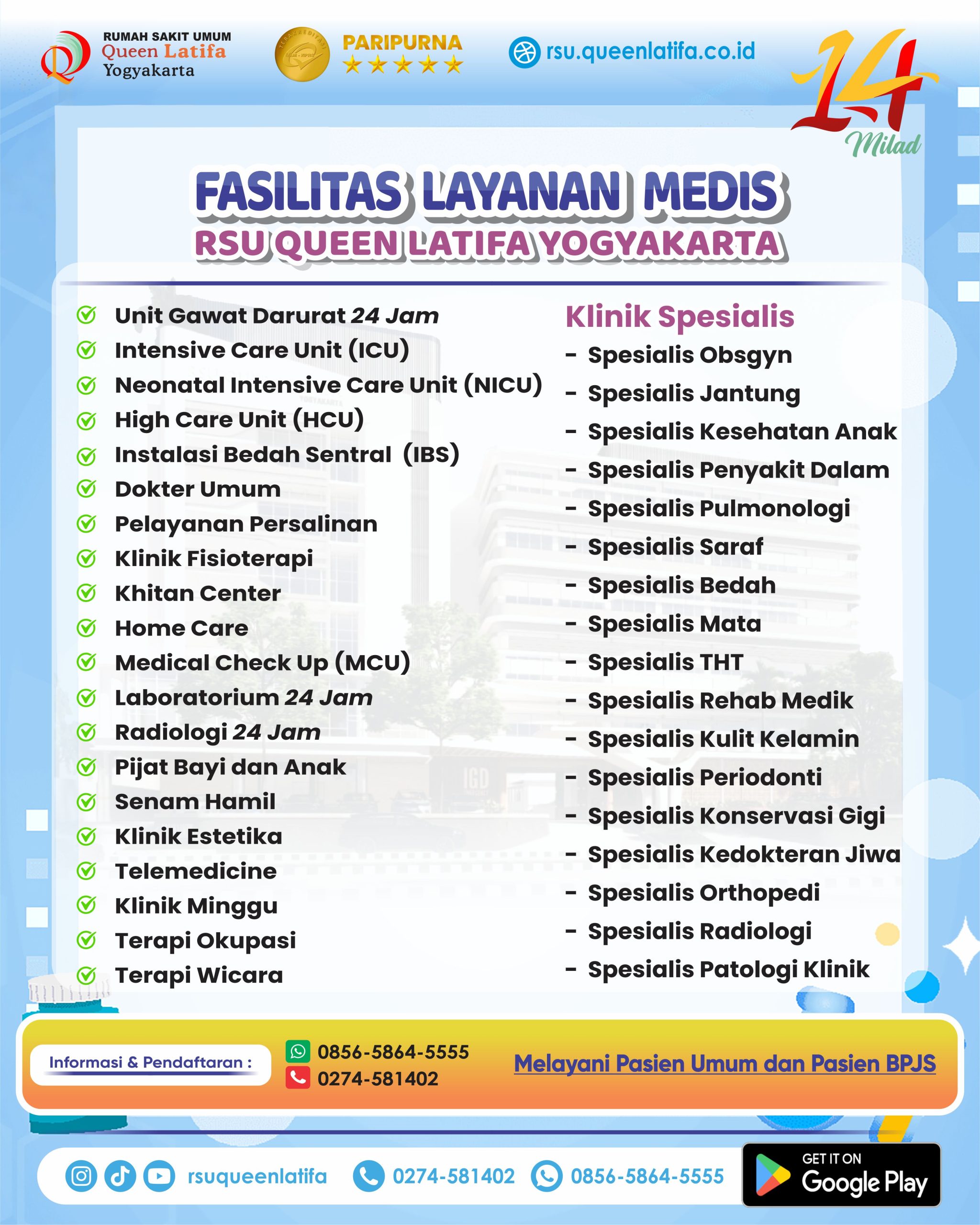 Berikut adalah Fasilitas dan All Layanan Medis RSU Queen Latifa Yogyakarta ????