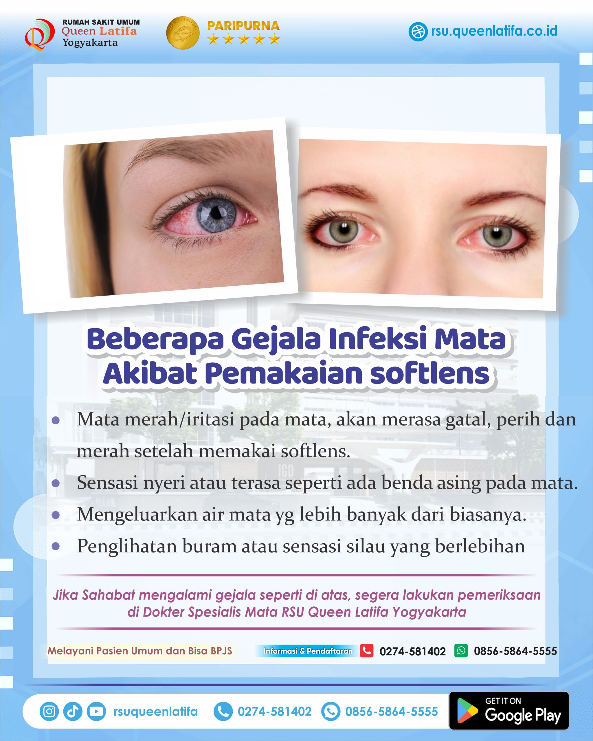 Bagi sahabat yg menggunakan softlens harap berhati hati yah dan jika mengalami gejala diatas, segera lakukan pemeriksaan di dokter spesialis mata RSU Queen Latifa ????✨.