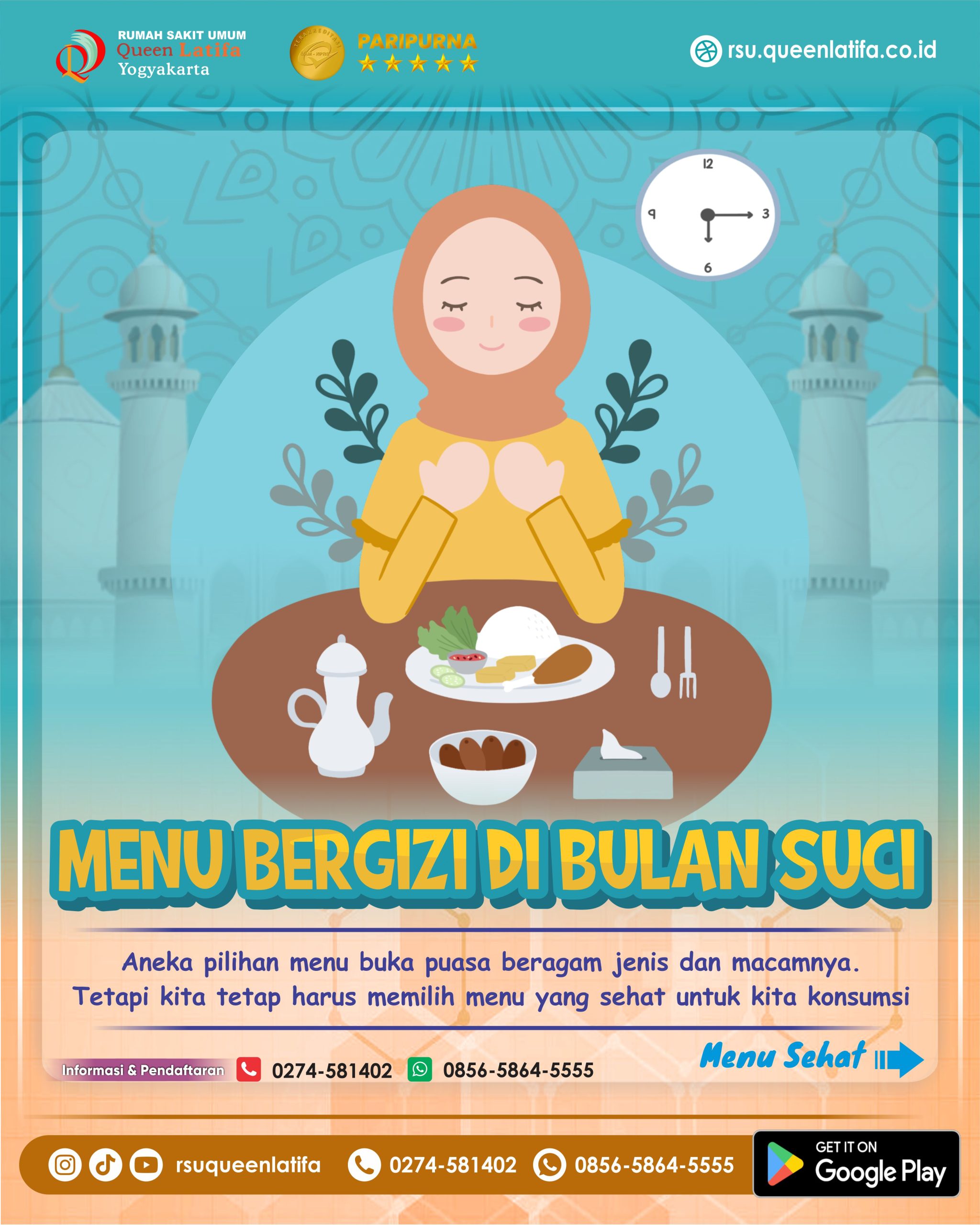 MENU BERGIZI DIBULAN SUCI 25 March 2024 | No Comments Berikut adalah rekomendasi pilihan menu sehat dan bergizi untuk dikonsumsi selama ibadah puasa di bulan suci, . . . . . . Visit: 139 Categories: Artikel Kesehatan, Informasi