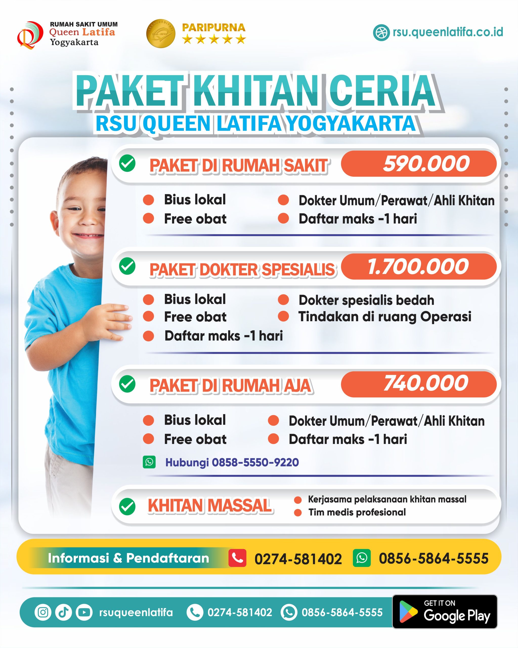 Yuk manfaatkan paket Khitan Ceria edisi Liburan Sekolah dengan harga yang bersahabat bersama RSU Queen Latifa!